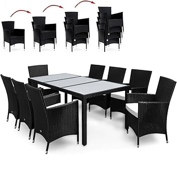 Black rattan garden table and chairs. Rattan garden furniture 11pc chairs stool table outdoor patio rattan blackbrown 49995 rattan outdoor garden bali day bed patio sun lounge in black brown grey mixed. Browse a variety of materials such as metal and rattan alongside a number of table sizes. Deuba poly rattan garden furniture dining table and chairs set rectangular glass top stackable beige or black outdoor patio dining set black 40 out of 5 stars 47 29995 299. Items 1 30 of 128 total.
