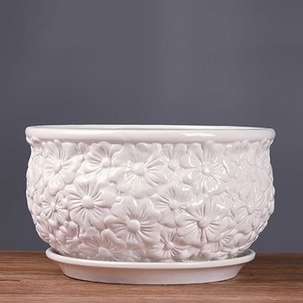 Bptchp Extra Large White Wide Mouth Ceramic Flower Pot Modern