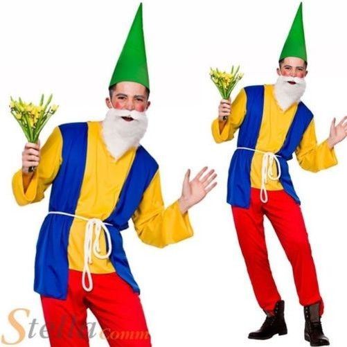Mens Funny Garden Gnome Costume Dwarf Fairy Tale Fancy Dress Adult