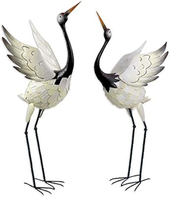 Bits And Pieces Red Crowned Cranes Metal Garden Sculpture Set
